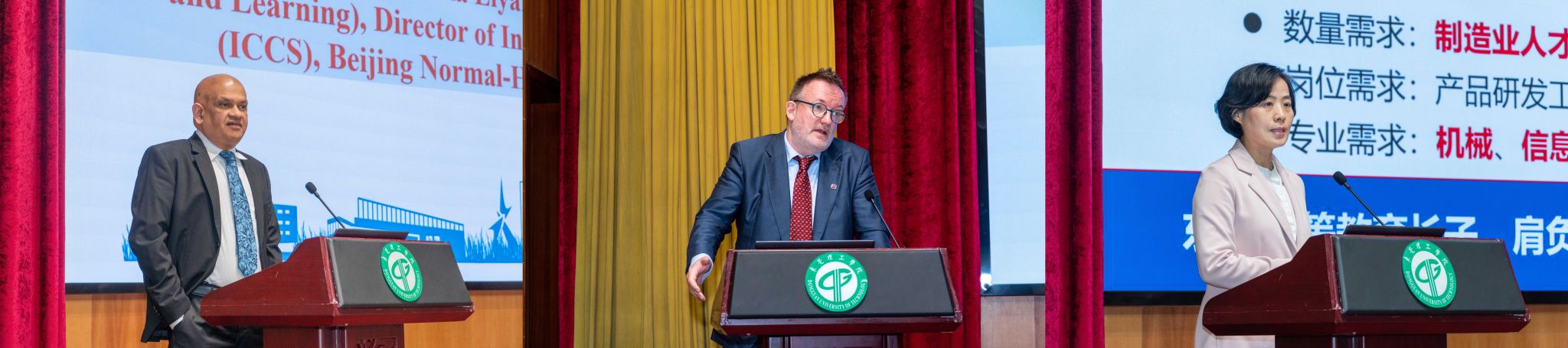 12月11日上午,2025年国际学术周国际化战略交流会在松山湖校区举行。古巴哈瓦那大学西班牙语系主任莉迪亚·埃丝特·古巴·维加(Lidia Ester Cuba Vega)、厄瓜多尔圣埃伦娜半岛州立大学(UPSE)电子与自动化项目主任罗纳德·温贝托·罗维拉·胡拉多(Ronald Humberto Rovira Jurado)、马来西亚国立大学教授萨拉妮·扎卡里亚(Sarani Zakaria)、韩国东国大学WISE校区中国业务中心负责人张道光(Jang Do-gwang)、北师香港浸会大学人文社科学院副院长、跨文化学术研究所主任因迪卡·利亚纳格(Indika Liyanage)、深圳理工大学人工智能研究院产业导师克里斯蒂安・加斯纳(Christian Gassner)、旭霖国际电子有限公司总经理钟旭(Fabrice Taieb)以及其他高校教师代表来校参加会议,学校党委副书记、校长马宏伟、党委副书记李忠红、副校长徐勇军、胡钦华、郑愚,以及相关职能部门和各二级学院的负责人、师生代表等参加会议。